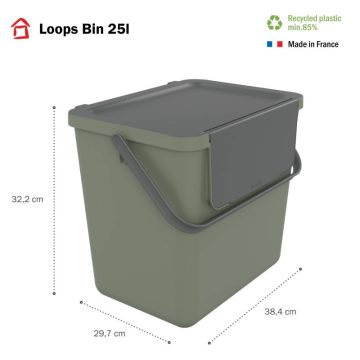Cos gunoi reciclare stivuibil PAA-home 25L pentru sortare deseuri culoare verde