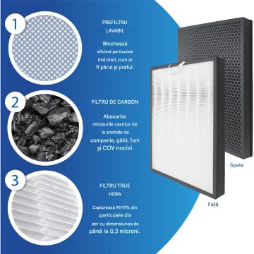 Filtru PAA-home compatibil cu Levoit Vital 100S LAP-V102S-WEU, filtrare HEPA H13 si carbon activ