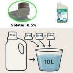 Solutie: 0,5% (2 doze/8 L) pentru curatarea curenta parfumata, 1% (4 doze/8L) pentru curatarea reziduala reziduala intensa • Spray: 3% (1 doza/650 ml spray)