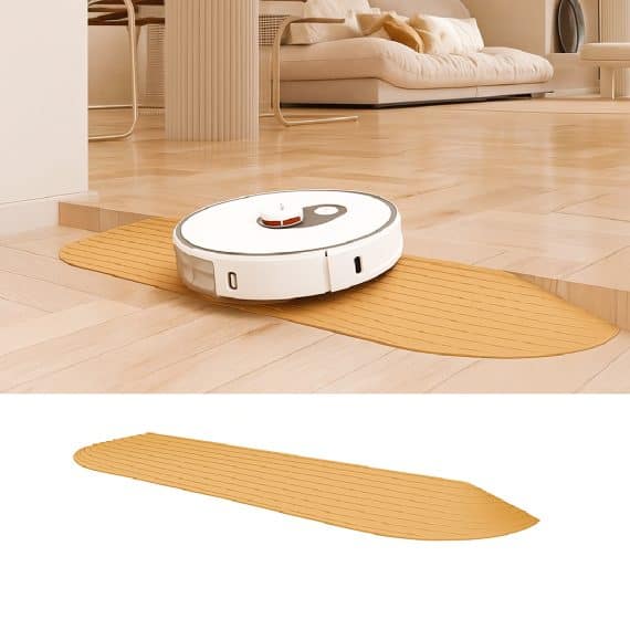 Rampa trecere prag PAA-home® pentru aspiratoarele de tip robot, culoare crem, dimensiuni 59.6×10.0x 2,5 cm, autoadeziva, material plastic
