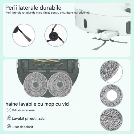 Descoperă perfecțiunea curățeniei cu setul de accesorii PAA-home, special creat pentru a maximiza eficiența aspiratoarelor tale robot. Fabricat cu grijă din fibre sintetice de calitate, acest set nu doar că susține randamentul optim al unităților robotizate, ci și extinde semnificativ durata de viață a acestora. Fiecare componentă a pachetului este proiectată să răspundă celor mai exigente standarde de curățare, făcând din rutina zilnică o experiență plăcută și ușoară. Filtrele incluse sunt esențiale pentru a asigura un aer proaspăt în locuința ta, eliminând eficient particulele de praf și alergeni. Lavetele și periile laterale și centrale sunt alese strategic pentru a atinge eficiența maximă chiar și în cele mai înguste spații, asigurând o aspirare impecabilă de fiecare dată. Compatibilitatea extinsă cu modelele Mova V50 Ultra, X50 Master și X50s face din acest set un alegere versatilă pentru orice mediu, fie el rezidențial sau comercial. În plus, sacii pentru praf sunt concepuți pentru a menține curate suprafețele pentru perioade îndelungate. Investește în calitate și asigură-ți o locuință curată și sănătoasă cu ajutorul acestui set de accesorii PAA-home, un partener de încredere în menținerea unui mediu fără cusur.