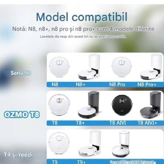 Set accesorii PAA-home, compatibile cu aspiratorul Ecovacs T9+/T9 N8/ N8+/ N8 Pro/ N8 Pro+/ T8/ T8+/ T8 AIVI/ T8 AIVI+ continut: 2 lavete, 2 filtre, 2 perii laterale, 1 perie contrala, 2 saci praf