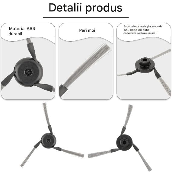 Cu o compatibilitate perfectă pentru aspiratoarele Mova, aceste perii sunt ușor de montat, oferind o performanță de top în eliminarea impurităților și păstrând podelele tale strălucitoare. Reînnoiește-le la fiecare 3-6 luni pentru a menține eficiența maximă a aspiratorului tău. Alege aceste perii laterale și vei descoperi un ajutor eficient și discret pentru întreținerea zilnică a casei tale! Transformă curățenia într-o sarcină mai ușoară și eficientă cu ajutorul setului nostru de perii colectoare.
