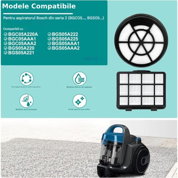 Set filtre PAA-home® compatibile cu modelul Bosch BGC05A220A BGC05AAA1 BGC05AAA2 Series 2 BBZ152EF
