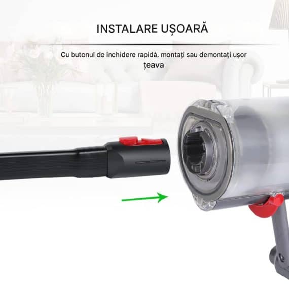 Tub flexibil PAA-home® pentru spatii inguste compatibil cu aspiratoarele Dyson V7, V8, V10, V11, V12, V15 si Gen5 Curata cu usurinta zonele greu accesibile din casa ta cu tubul flexibil PAA-home®, compatibil cu aspiratoarele verticale Dyson. Proiectat special pentru colturi, spatii inguste, sub mobilier sau in masina, acest accesoriu este extensibil, usor de manevrat si …