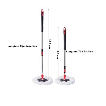 Mop cu tija telescopica PAA-home®, autostoarcere pe tija, include 2 lavete microfibra 42 x 13 cm cm, rotire 180 grade
