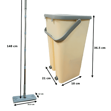 Set mop cu galeata PAA-home®, mop plat din microfibra, cuve separate pentru spalare si uscare, 2 lavete pentru mop incluse, orificiu scurgere apa, capacitate 3.2 Litri